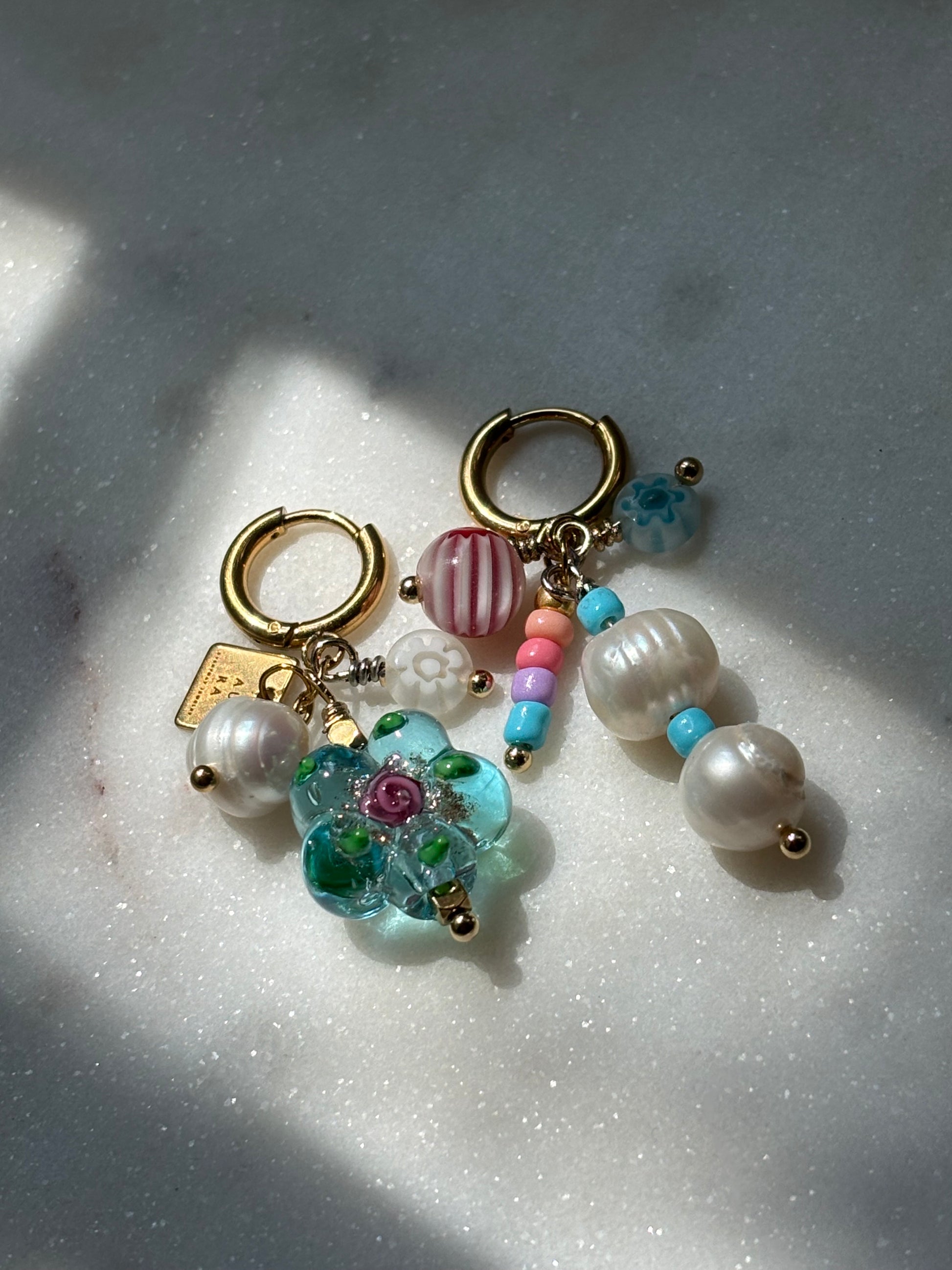 Hecho a mano. Con perla natural, murano beads y chaquiras.