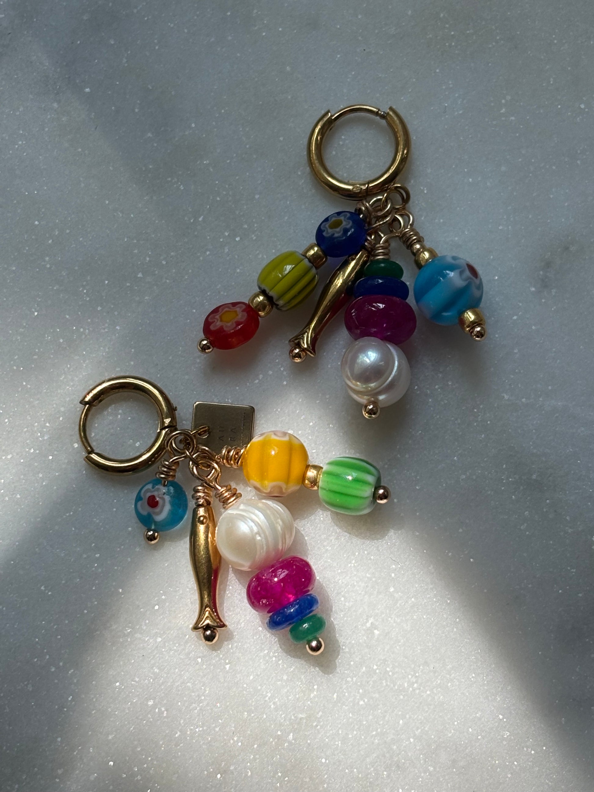 Hecho a mano. Con murano beads, calcedonia, jade, perlas naturales y charm de acero inoxidable.